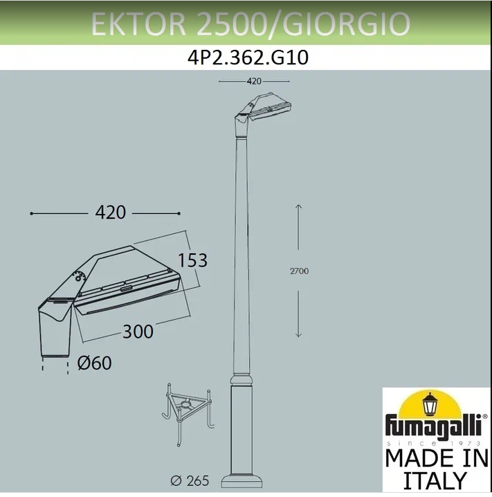 Парковые светильники GIORGIO изготовлены из ударопрочного полимерного материала, устойчивого к ультрафиолетовому излучению с гарантией 5 лет, не подвержены ржавчине и коррозии. Подходит для установки на опору, поверхность, В ассортименте опоры до 4м.