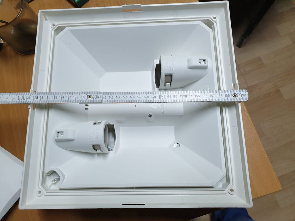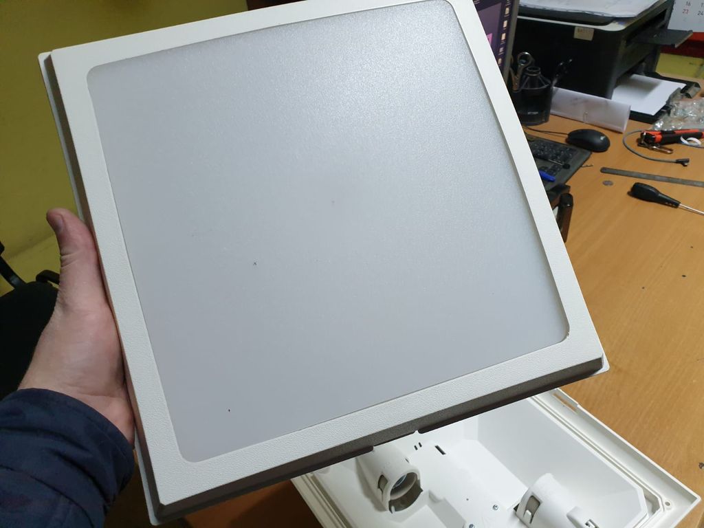 Оснащен двойными диффузорами из ПММА с Отражающей пластиной, предназначенной для размещения источника освещения.