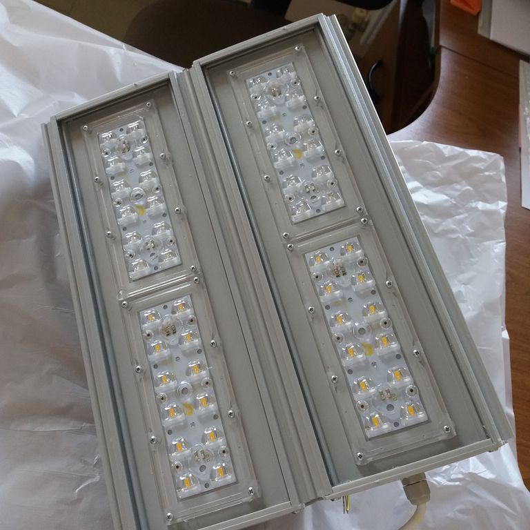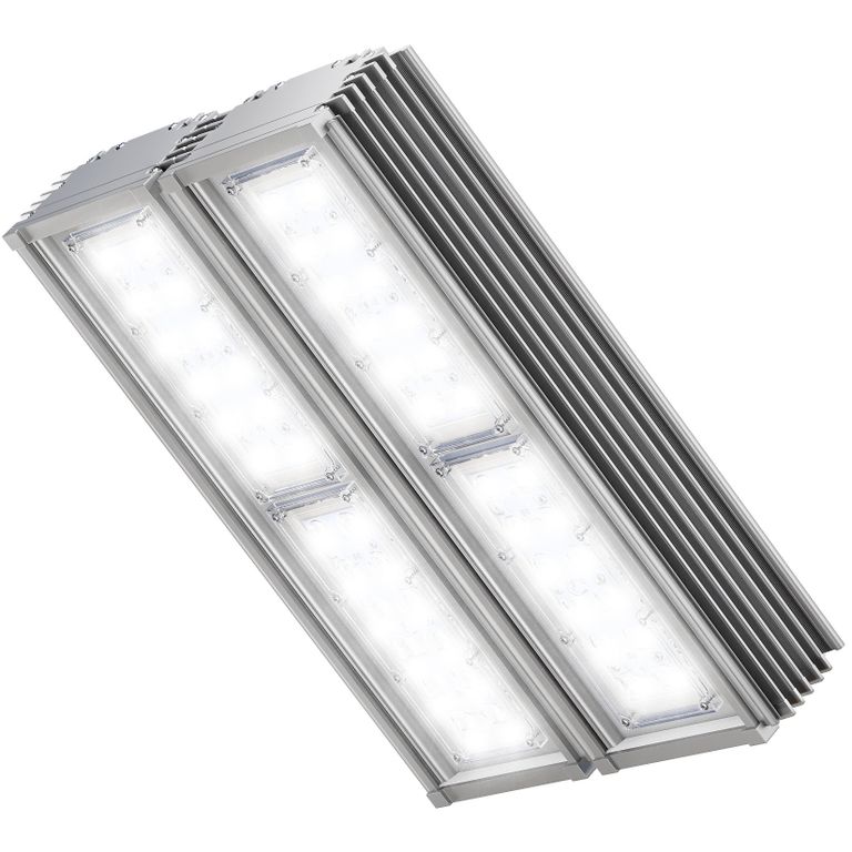 Светильник выполнен из 2 секций по 2 модуля на каждой. Отличается высокой производительностью и разнообразием креплений.