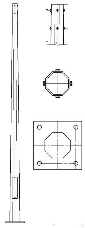 ОГС-9 гранёная силовая опора освещения, используется для установки светильников уличного освещения. Опоры ОГС изготавливаются из листовой стали с гранями и конусом к верху, имеют усиленную и прочную конструкцию. А также при производстве применяется горячее цинковаение создающее на опоре защитный слой цинка защищающий от коррозии, в дальнейшем опоры не нуждаются в покраске или обслуживании.