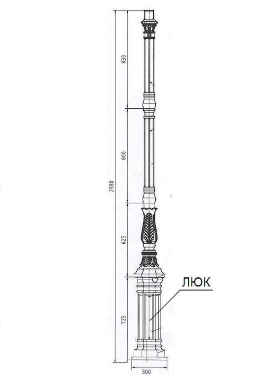 Это опора вместе с классическими светильниками создает шакарный парковый фонарь, который великолепно подходит для освещения парковых зон, для освещения территорий жилых поселков.
