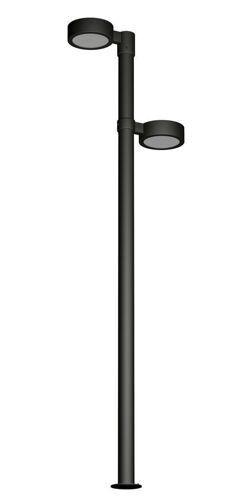 Состоит из стальной опоры 108мм покрытой 2мя слоями цинкогрунта + порошковая краска и 2 светильника мощностью по 50Вт