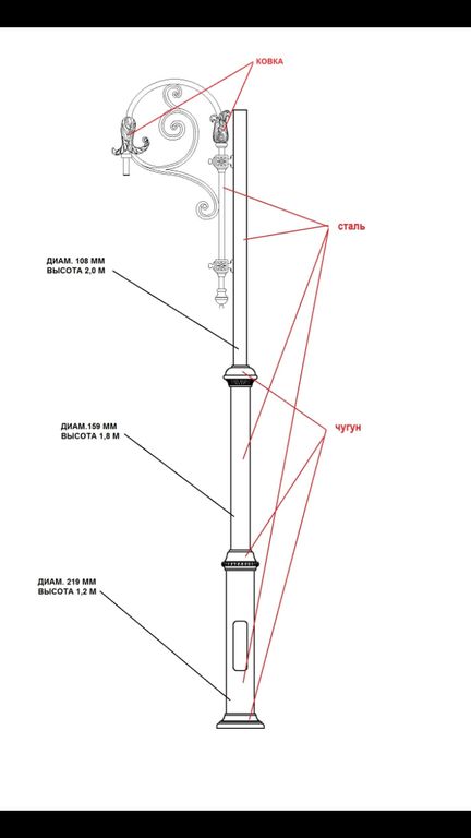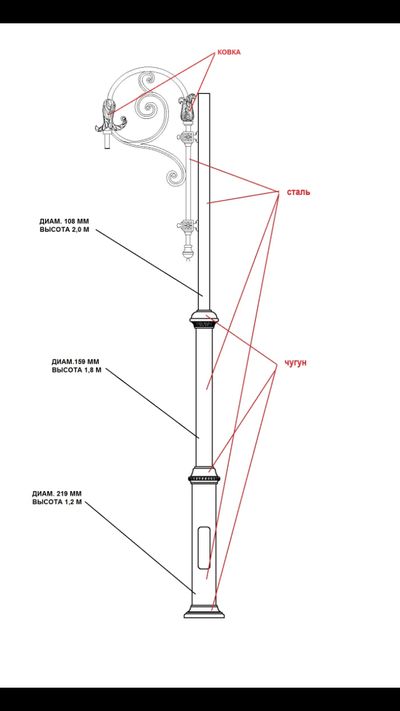 Опора парковая с чугунными элементами, изготавливается под заказ по вашим размерам.