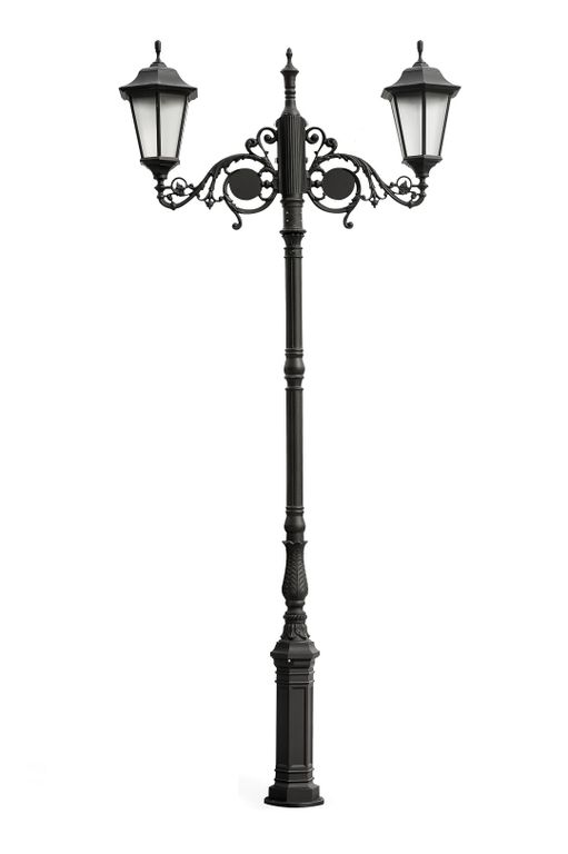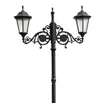 Парковые фонари Bremen на резной опоре с кронштейнами под старинный стиль, эффектно украсят основные улицы и главную площадь любого города, а высокое качество материалов и покраски сохранит первоначальный вид не требует обслуживания. Стекло усиленное с призмой равномерно мягко рассеивает свет освещая на 360гр.