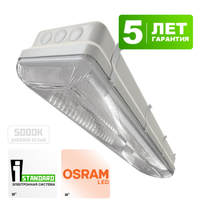 Промышленные светильники PROM-50 (ЛСП-236) ip65; Яркие светодиоды Osram и надёжные блоки питания Philips / Fonte для стабильной работы. Производятся в пластиковом корпусе с пылевлагозащитой. Имеет стабильный световой поток 6750Лм и является самым мощным в своём классе, для промышленных зон фабрик и заводов.