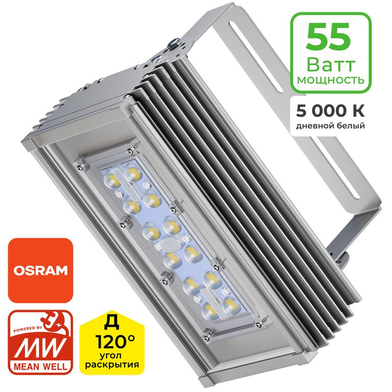 Промышленный светодиодный светильник с оптическими линзами и выносным на корпус источником питания со степенью защиты IP67. Данная модификация позволяет вести эксплуатацию светильника при экстремальных температурах: +60 градусов окружающей среды. Возможны установки линз на ваш выбор КСС.