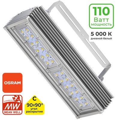 Промышленный светодиодный светильник PROM S110W это современные яркие светильники на светодиодах Osram c блоком питания Philips с защитой от скачков тока и перегрузки сети, при небольшом потреблениии 110Вт выдаёт мощный световой поток и эффективно освещает обширную территорию ;