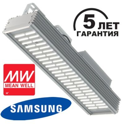 Мощность: 200 Ватт / Производительность: 33000 Лм / Цветовая температура: 5000K / Светодиод: Samsung / КСС: Д (120°) / Алюминий / ИПС MEANWELL / Светильник предназначен для режима 24/7 / Защита от перенапряжения / Гальваническая изоляция / Соответствие ГОСТ, IEC / 176-264AC/250-370DC / 100 000 часов / 5 лет / 520x140x140 / Нетто: 4,1 Кг