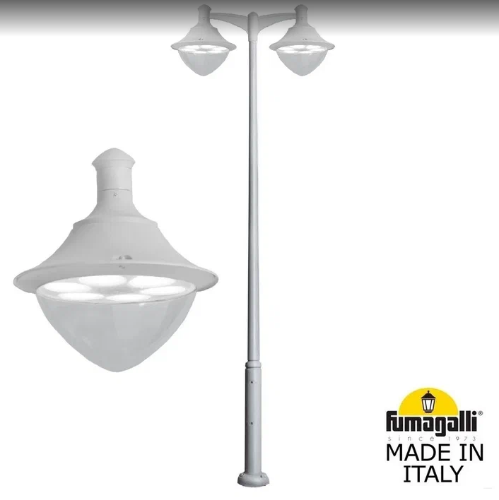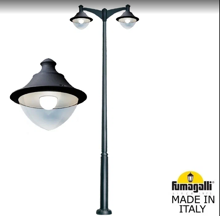Уличный Светильник в комплекте со столбом 2,5м или 4,0м с кронштейном серии VIVI, пр-во FUMAGALLI (Made in Italy). с посадочным диаметром 60 мм, монтаж в положение "вниз".