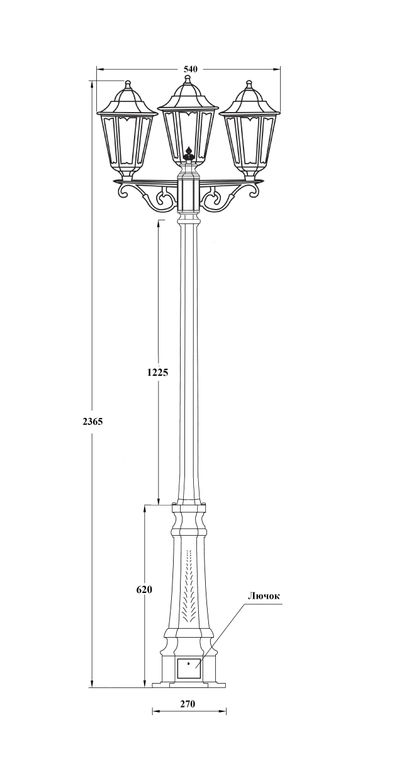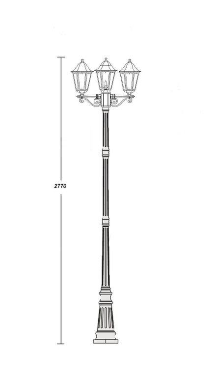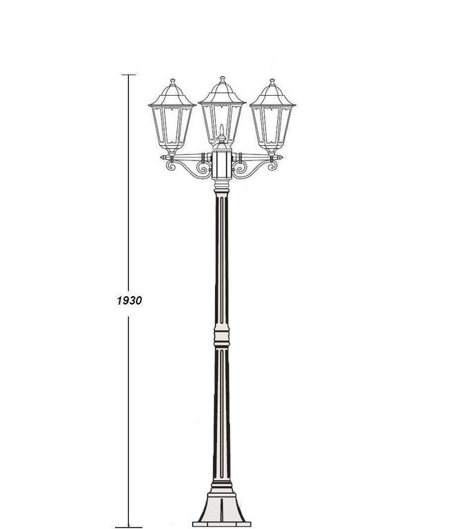 Садово-парковый светильник серии Petersburg производятся в 2х размерах S(маленький) и M(средний), 3х цветах чёрный,белый и черно-золотой.