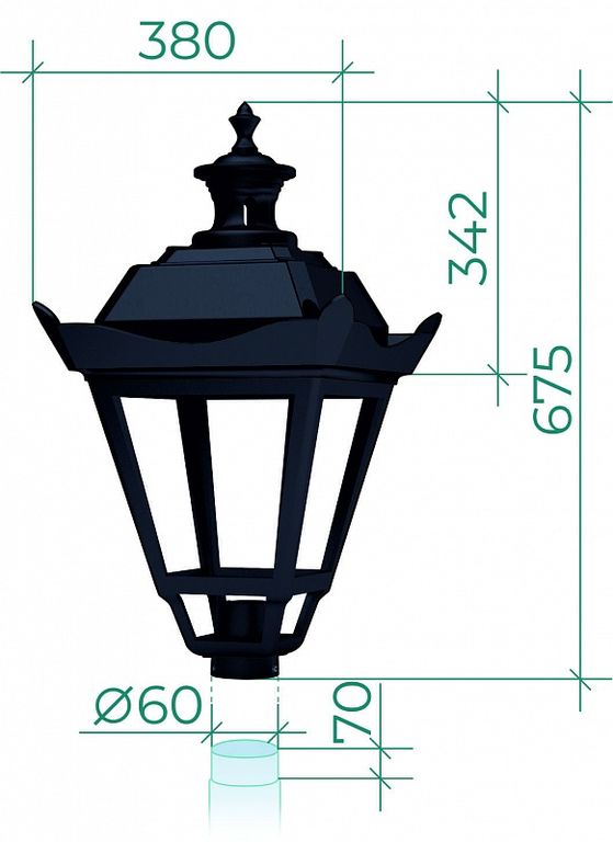 Данный светильник, как архитектурное произведение для вышей территории, украшает днём и освещает ночью.